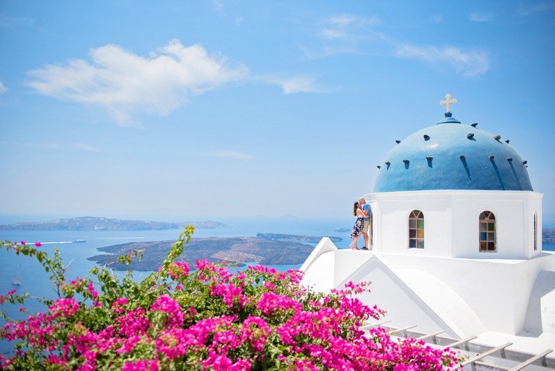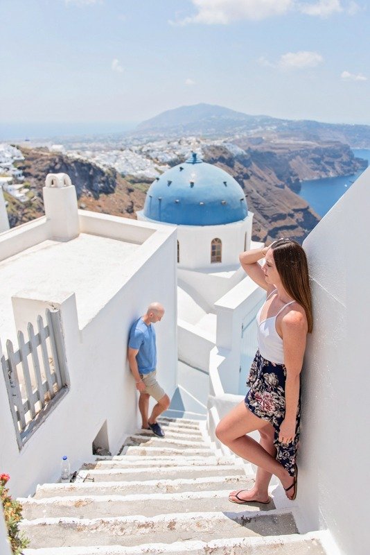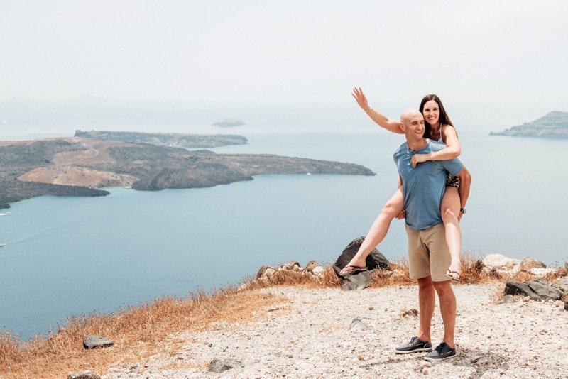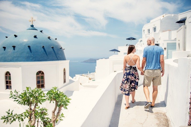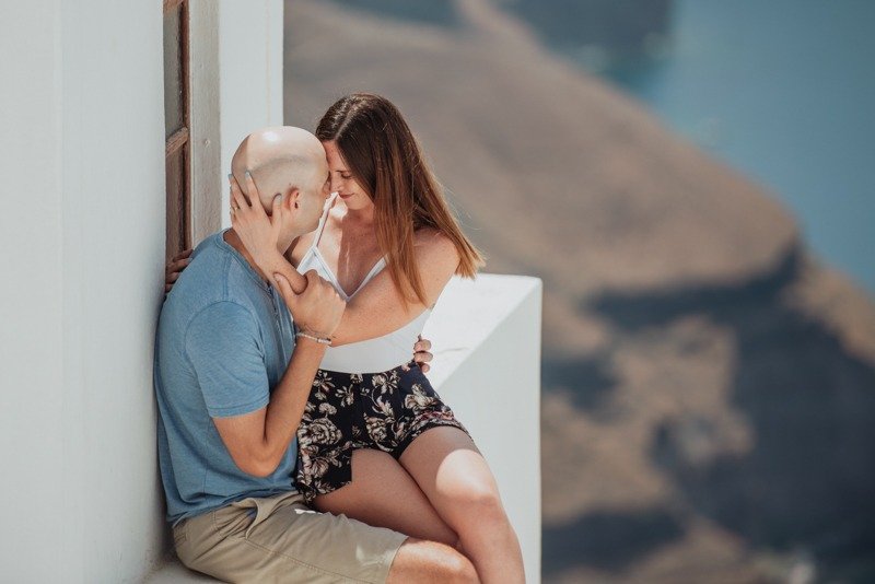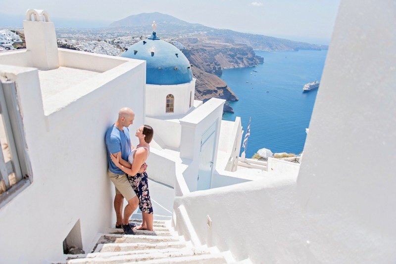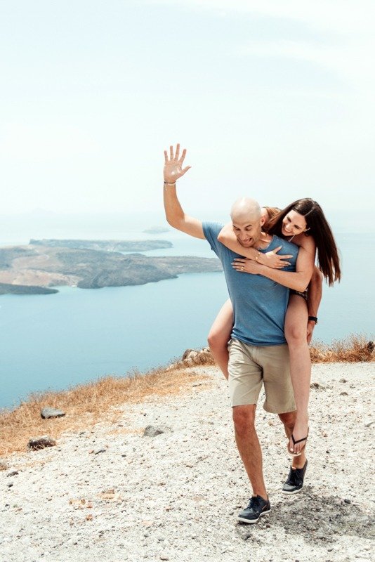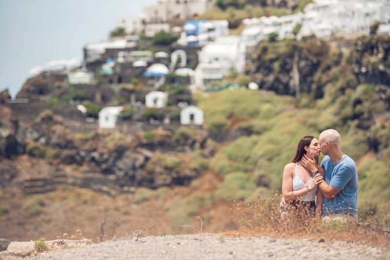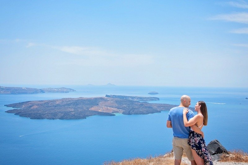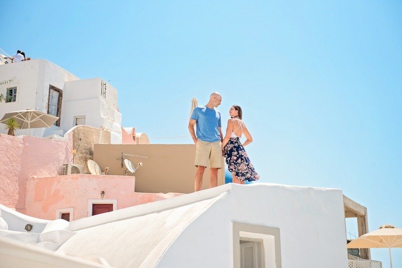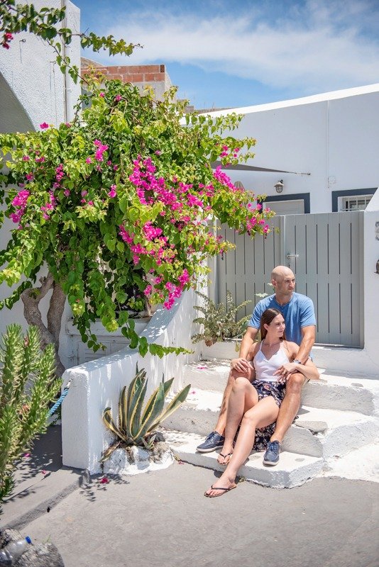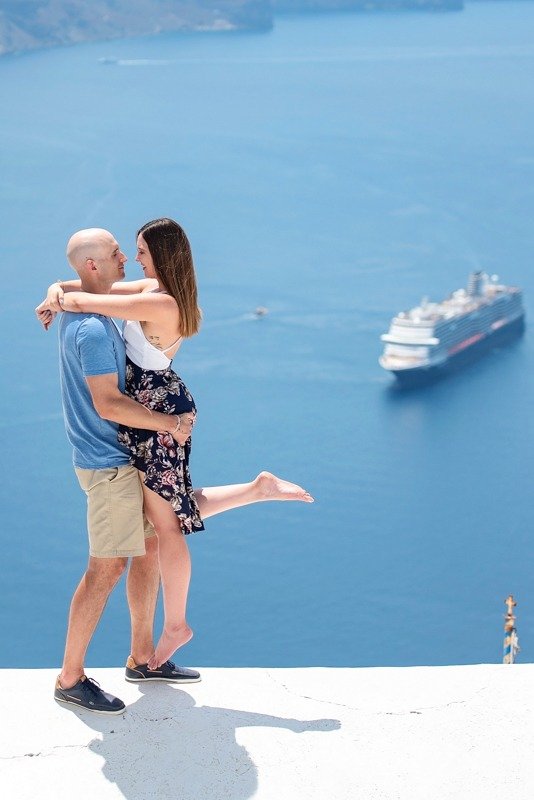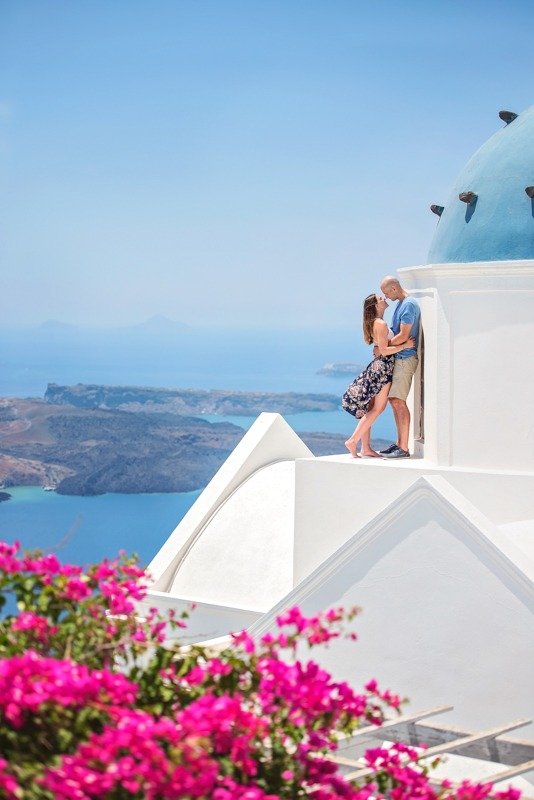 So happy to have met this wonderful couple!!!Patricia and Ben where going to travel to Santorini for their honeymoon. I received a message from Patricia that she was thinking of surprising her husband with a photoshoot. Oh! How I love surprises! We arranged everything and on the morning of the July 15th we picked them up from their hotel with Ben being informed about Patricias plans in the car while we where driving to you first photoshoot location in Oia. We had the most amazing time and are so thankful they showed trust in us to create together these beautiful memories from their trip!!!